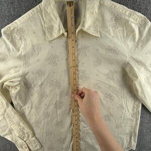 Armani Exchange Women Long Sleeve Button Up Shirt Floral Large Ivory Point