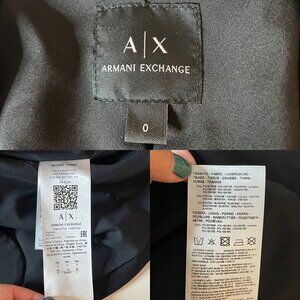 Tags: black blazer, tailored blazer, business jacket, formal blazer, long sleeve blazer, single-button blazer, black suit jacket, sleek black blazer, office wear jacket, Armani Exchange blazer, women's professional jacket, women's size 0 blazer, Armani tailored jacket, career wear