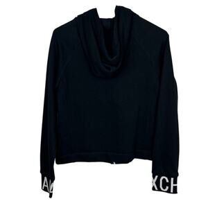 Armani Exchange Womens Black Hoodie Logo Cuffs Full-Zip Closure Size L