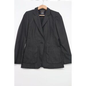Armani Exchange Womens Black Single-Button Blazer Jacket With Front Pockets