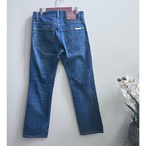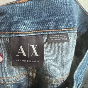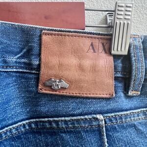 Armani Exchange Women's Blue Mid Rise Jean Straight Leg 28x29 Light Distress