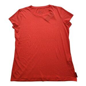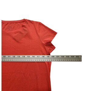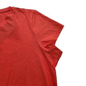 This Armani Exchange Women's Tee Shirt in size XL is a stylish and versatile addition to any wardrobe. Featuring a crew neck and pullover closure, this short sleeve shirt is perfect for casual or travel occasions. Made from lightweight jersey fabric, it offers easy care and is suitable for all seasons. The coral orange color and solid pattern add a pop of color to your outfit, while the slim fit and classic style make it a timeless piece. Made from Pima cotton, this t-shirt from Armani Exchange is sure to be a comfortable and fashionable choice for any woman.