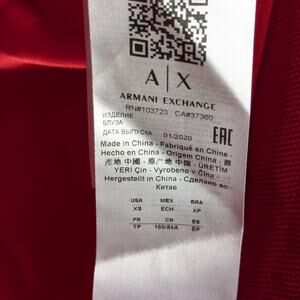 Hidden SEO keywords (backend): Armani Exchange top, red boucle blouse, AX womens pullover, short sleeve sweater top, Armani Exchange XS shirt, party top, textured knit blouse
