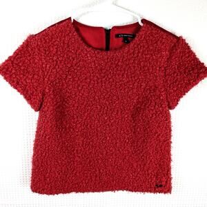 Armani Exchange XS Red Boucle Textured Short Sleeve Top Womens Blouse AX