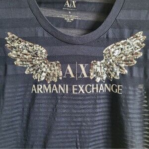 Armani Exchange Y2K See Through Sheer Bling Sequin Wing Short Sleeve T-Shirt S