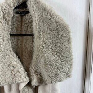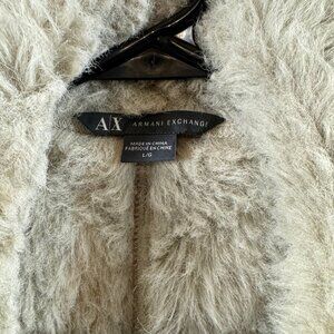 Armani Exchange faux fur and suede cream vest. Includes matching belt. Face: 100% polyester. Backing: 77% modacrylic, 23% polyester. Size L