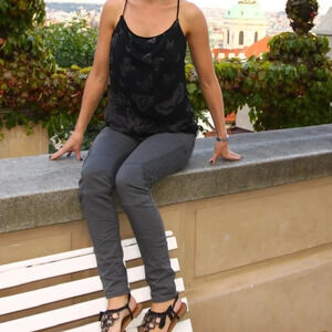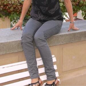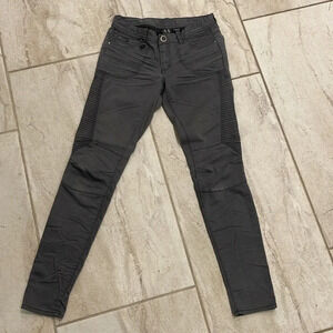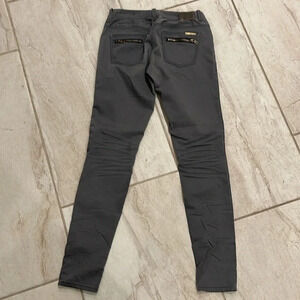 Grey-colored Armani Exchange moto Jeggings. Labeled 6 but no joke fits like a size 2, my standard size pants (as you can see by the majority of my closet. Zip and snap closure. Functional zip pockets at back. Cotton poly spandex. 15” across top of waist, 8” rise, 30.5” inseam.