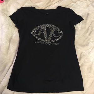 Armani exchange rhinestone logo tee. Only missing one rhinestone in the 'X'. Size: Xs. Color: Black, rhinestone are silver.
