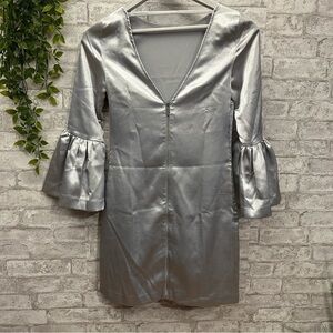 Armani Exchange shirt dress women’s size 0 silver metallic flare sleeves NWOT