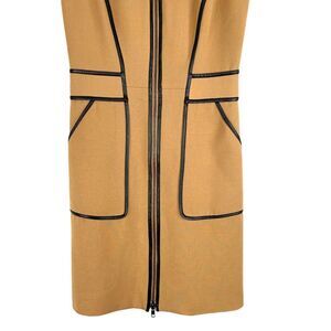 Armani Exchange sleeveless sheath full zip dress Sz 2 caramel tan
