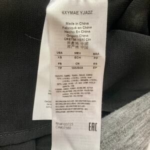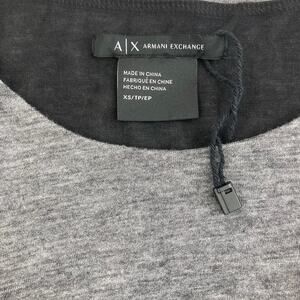 Women's Armani Exchange wool jersey & chiffon short sleeve t-shirt top. New without tag. Size xs but relaxed fit may work for a small as well. (Actual measurements listed below) Soft Lyocell & wool jersey is juxtaposed with silky sheer fabric as a faux layered style to lend a feminine touch to this chic tee. Crewneck. Short sheer sleeves. Gray 70% Lyocell 30% wool jersey body with black polyester chiffon sleeves & lining that forms a high low sheer rounded hem extending below tee. Never worn. still has tag cord but tags missing. Metal logo plaque on lower left front.