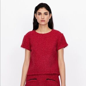 Absolutely gorgeous new Armani Exchange burgundy red shirt made of teddy bear fur material on the front and a different fabric on the back.