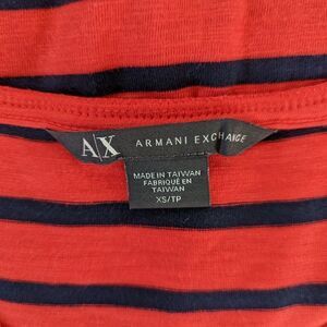 Armani Exchange Red Blue Striped ¾ Sleeve Midi Dress Preppy Parisian Nautical Old Money Nautical Sailor Chic XS, blue is more of a navy hue, Armani Exchange metal logo on the bottom, soft, lightweight, pull-over design, minimal pilling in the back of the dress, wear with cool kicks, boots or booties