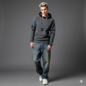 Armani Jeans Gray Front Pocket Hooded Pullover Sweatshirt Men's Size Large