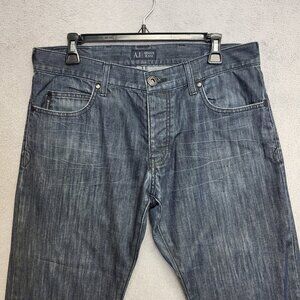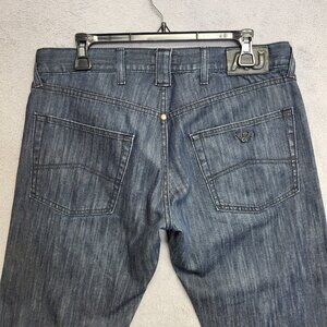 Armani Jeans Mens 32x28 Indigo Blue Classic Wash Relaxed Straight Denim Distress