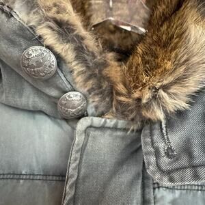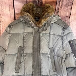Armani Jeans Men’s Gray Down Puffer Jacket Fur Trim Hood Coat Size M Outerwear