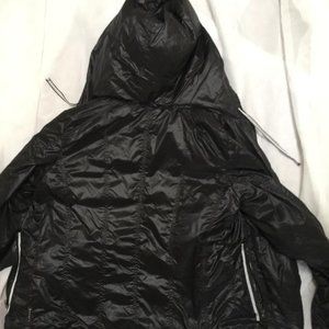 Color: Black 100% Polyamide; lining: 100% Polyester-faux fur; attached hood. front zip closure; possible reversible if label is cut.