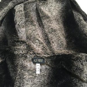 Armani Jeans Women's Hooded Jacket with a black/grey faux fur lining. Two front zip pockets.