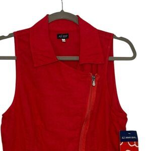 Armani Jeans Red Linen Sleeveless Linen Moto Top Vest| Size 10