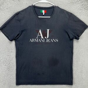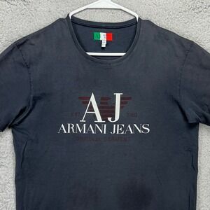 Armani Jeans T-Shirt Tee Mens Large Black Graphic Print Short Sleeve Crew Neck