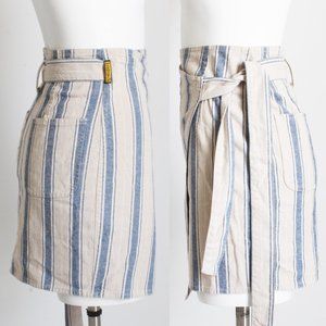 Armani Jeans Wrap Skirt Cotton Ramie Linen Blend Striped