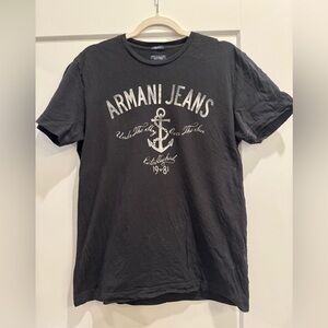 Classic black t-shirt from Armani Jeans featuring a stylish anchor graphic. Perfect for casual wear.