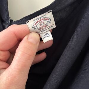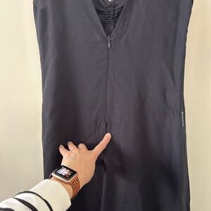 •Dark navy blue, linen viscose blend sleeveless v-neck midi maxi dress, side slit, zip back, made in Italy, vintage