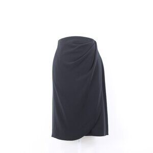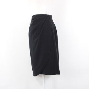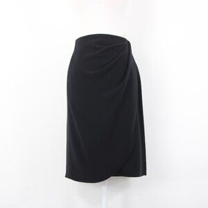 Armani Skirt Sz 10 Black Faux Waterfall Waist Wrap Detail Polyester Unline Skirt