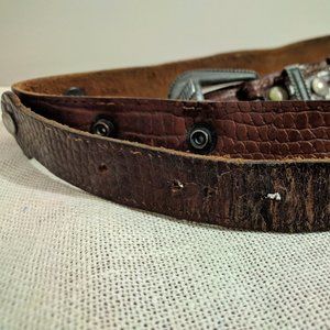 Armani Vtg Belt Brown Embossed Leather 26-37''