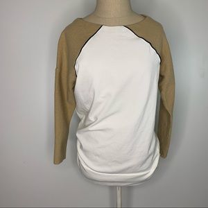 White and khaki color block pullover