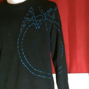 Black with blue on the inside and Decoration Armani exchange light sweater. Size is men's lg