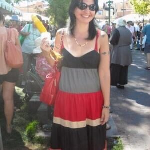 silk halter with full skirt and multi-colored stripes Vintage from the mid-2000s price firm Bohemian, boho, hippie, eclectic, multicolor, flowy, festival, indie vintage halter deep v draped