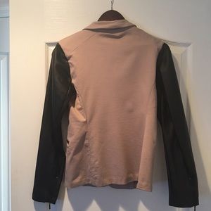 Armani exchange taupe stretch blazer with black faux leather sleeves Zippers on sleeves
