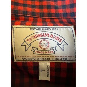 Armani jeans, red checkered men's long sleeve shirt, size large