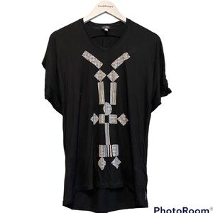 Armani jeans women’s black over sized T-shirt with silver sparkle graphics | XS