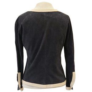Beautiful lightweight suede jacket/top dark navy with ecru trim. New with Neiman Marcus tags. Never worn. Looks great with jeans!