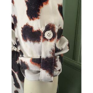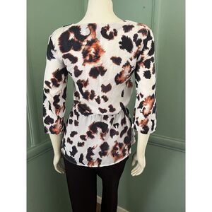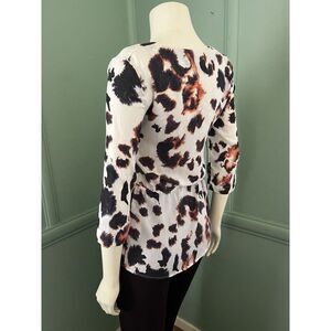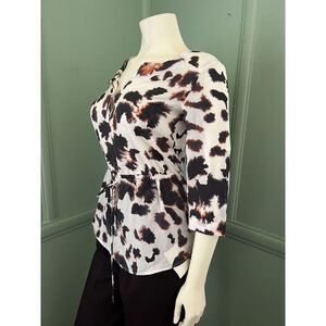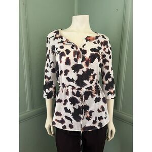 Armani Exchange V-Neck Leopard Print Tunic with Drawstring Waist 3/4 Sleeves XS