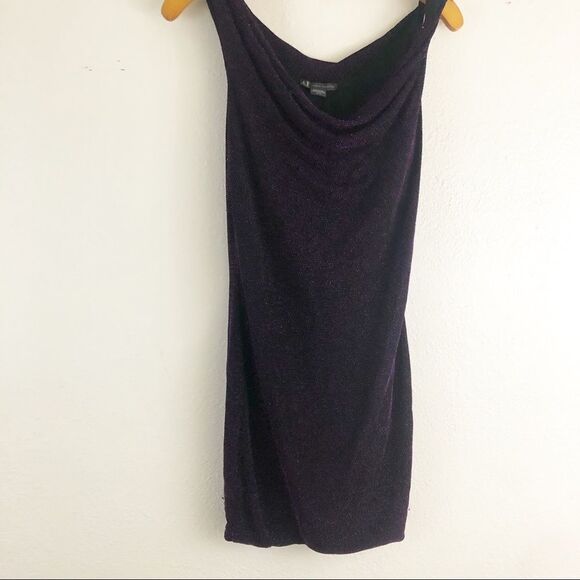 Armani Exchange sleeveless purple metallic mini Bodycon dress size XS Pre-owned. It has some flaws see pictures for details