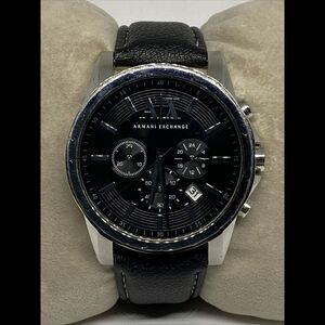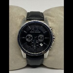 Armani Exchange AX2084 Men's Black Leather Analog Dial Quartz Wrist Watch EY432