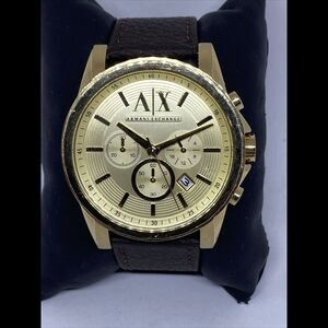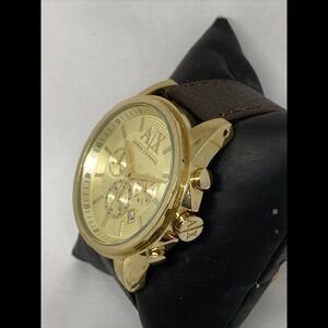 Armani Exchange AX2099 Men Brown Leather Analog Champagne Dial Wrist Watch UC296