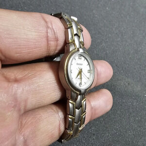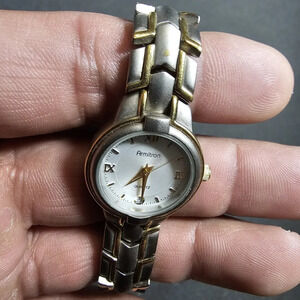 Armitrin Ladies Quartz Fashion Watch Working Silver/Gold Tone Date Just 25/6212S shows signs of wear such as scratches and discoloration see picturea for reference