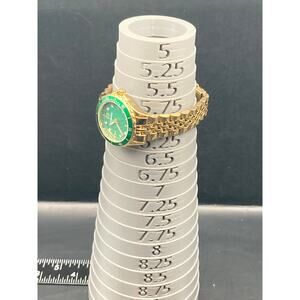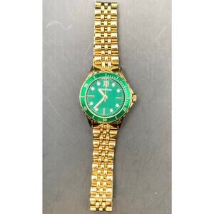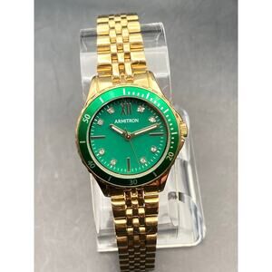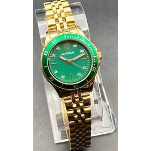 This Armitron 75/5730GP women's watch is in excellent condition and features a beautiful green gold tone.