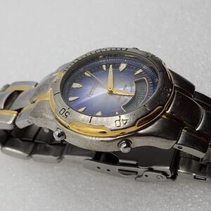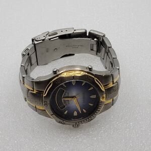 Armitron ANA DIGI Gold Silver Two Tone Alarm Blue Fume Chronograph Bezel Watch