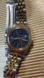 Elegant Armitron watch featuring a blue dial. Silver and gold two-tone band adds sophistication. The product is a vintage Armitron watch for women, featuring a two-tone stainless steel design with a blue dial. It has a classic style with a round watch shape and a fixed silver bezel. The watch is water-resistant up to 30 meters and has features such as a seconds hand and a 12-hour dial. Made with quartz movement, the watch does not come with original box or papers. This stylish timepiece is a perfect addition for any woman looking for a unique and vintage accessory.