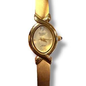 Armitron Diamond Now Watch Womens Gold Tone Bangle Bracelet Quartz RUNS