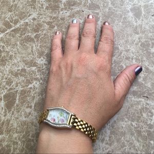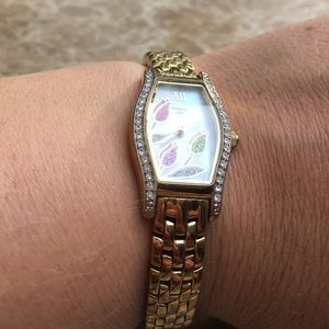 This watch has a nice weight, and is very comfortable around wrist. The crystals and faux diamond chips surrounding the face add a flare to any outfit! Details are everything