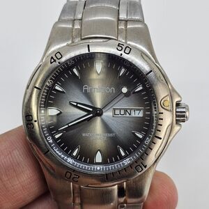 Armitron Men's 40MM Watch Black Dial Day Date Gray Bracelet Band 7" New Battery