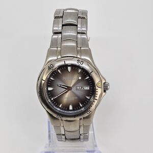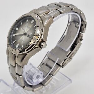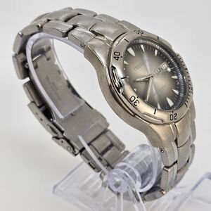 Used. Working. New Battery. Case, Back and Bracelet have scratches and discoloration. Bezel its stuck. It needs cleaning. (Stand NOT Included. For Display Purpose Only). Please Refer to Pictures.
