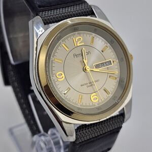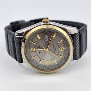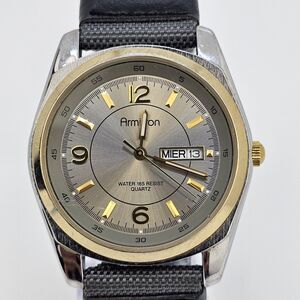 Armitron Men's Watch 38MM Gold Dial Day Date New Gray Canvas Bands New Battery