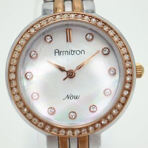 Armitron NOW Womens Watch 29mm MOP Dial Two Tone Jewel Bezel with New Battery